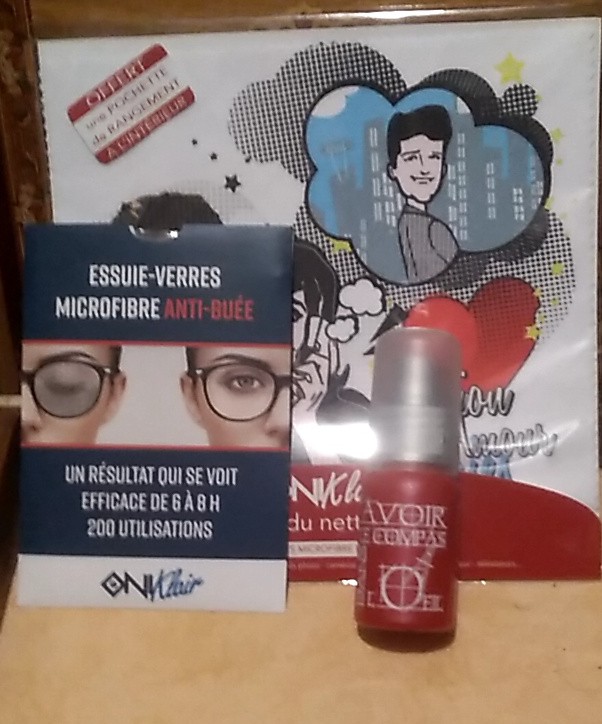 lot composé d’un essuie verre anti-buée d’un spray nettoyant ainsi qu’une lingette anti-buée.